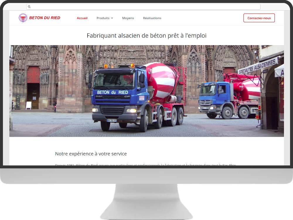 Refonte graphique du site de Béton du Ried, une entreprise alsacienne spécialisée dans la production de béton prêt à l’emploi. L’objectif était de moderniser l’ancien site web dont les contenus textuels et visuels n’étaient plus mis à jour depuis très longtemps.